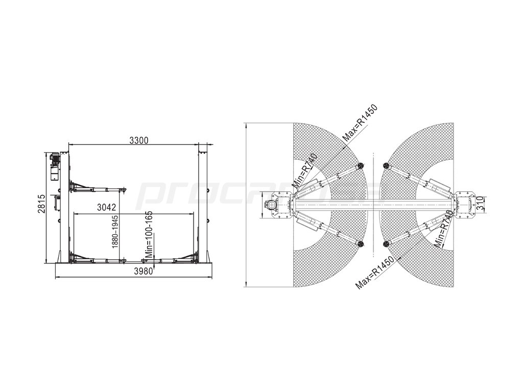 Elektrohydraulický dvousloupový zvedák s hydraulickými válci v každém sloupu je určen pro zvedání osobních a lehkých nákladních automobilů. Ve sloupech se pohybují boční platformy se symetrickými teleskopickými rameny. Zvedáky jsou osvědčené konstrukce, se spolehlivou hydraulikou a vysokou bezpečností provozu. Zvedák je vybaven hřebeny, do kterých při pohybu nahoru zapadají aretační západky. Při pohybu dolů jsou aretační západky odjišťovány elektromagnetickými mechanismy s ovládacím napětím 24 V. Zvedák je dimenzovány na dlouholetý a spolehlivý provoz s nenáročnou údržbou.