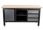 Celokovová hluboká dílenská skříň se dvěma dveřmi a policemi.