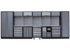 Celokovová hluboká dílenská skříň s dveřmi a policemi.